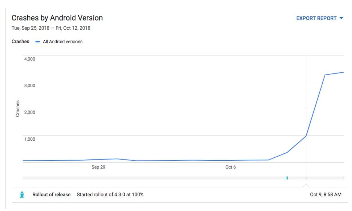 发布几个小时后,我们突然收到很多 Android 崩溃事件。