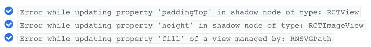 所有的新错误都是类似“JSApplicationIllegalArgumentException Error while updating property ‘left’ in shadow node of type: RCTView”这样的。