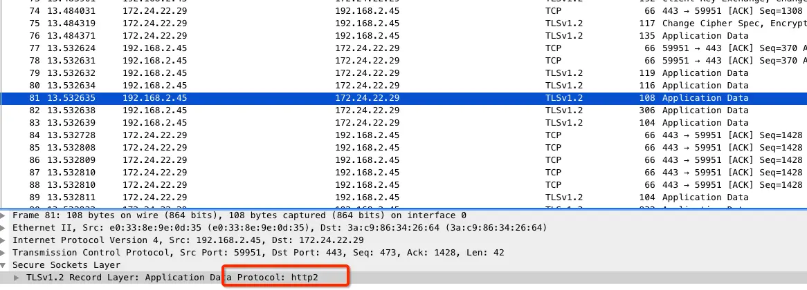 还可以用WireShark抓包查看是否为HTTP/2的请求