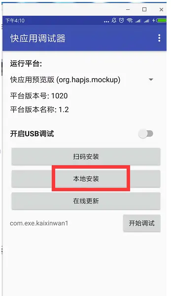 · 本地安装:选择手机文件系统中的rpk包,并唤起平台运行rpk包