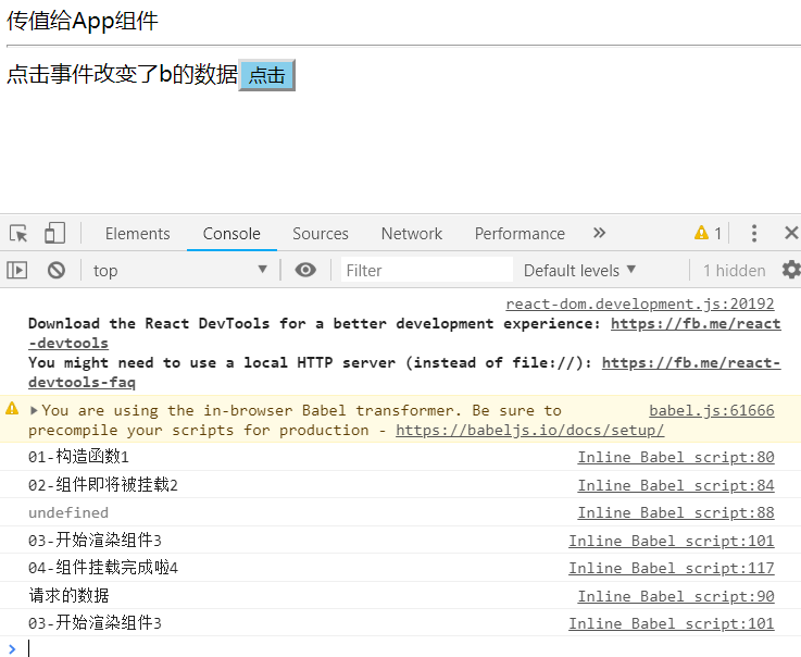 - componentWillReceiveProps()是在当父组件更新数据时 才会触发,下一个例子。