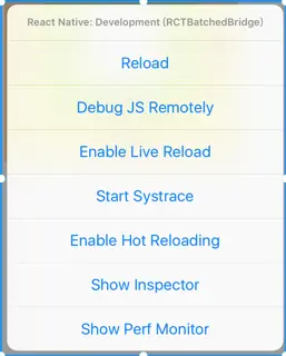 真机摇晃后调出的调试菜单如下(此截图为ios,android类似)