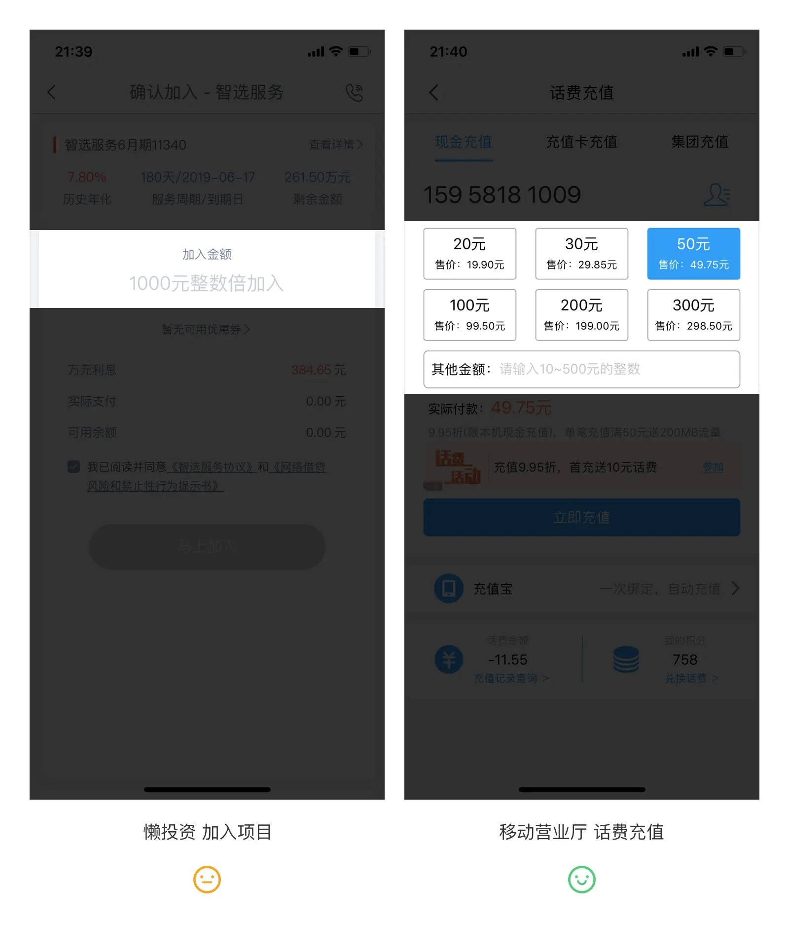 比如懒投资中的项目加入金额,就完全可以像话费充值那样,提供几个高频的数字来让用户点选,避免让他们手动输入。此外,既然已经明确表示需要1000元的整数倍了,也可以采用自动补全的方式来方便用户输入。
