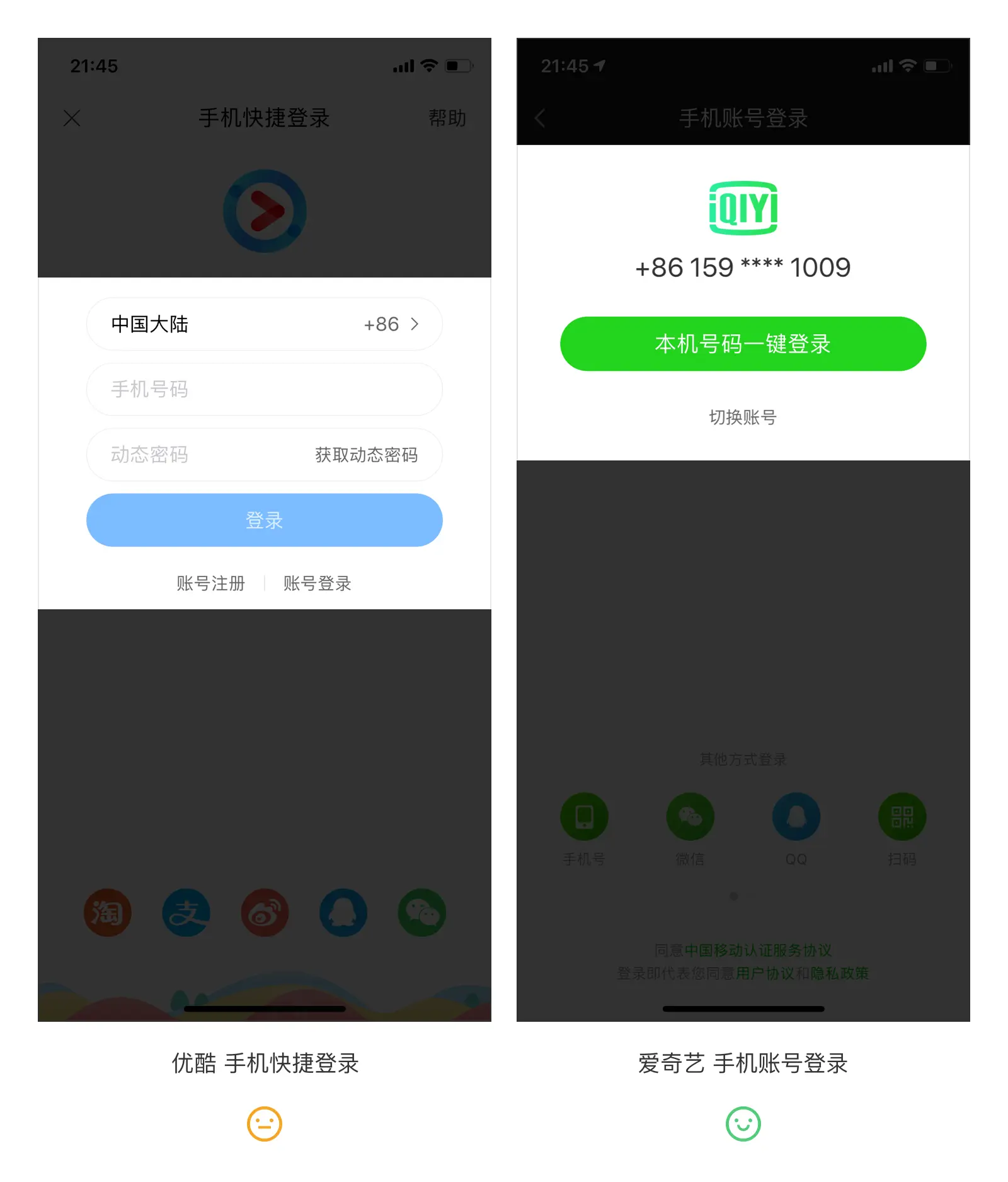 在爱奇艺中登录的时候,它会自动获取到用户当前手机的号码,这样一来,用户就可以直接点击一键登录了,而不再需要一位一位输入手机号了。