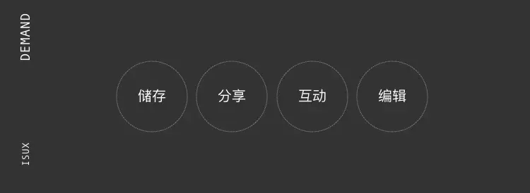 根据产品定位,我们提取了几个关键词(存储,分享,互动,富媒体化编辑)的四个方向为用户提供全方位的产品体验。