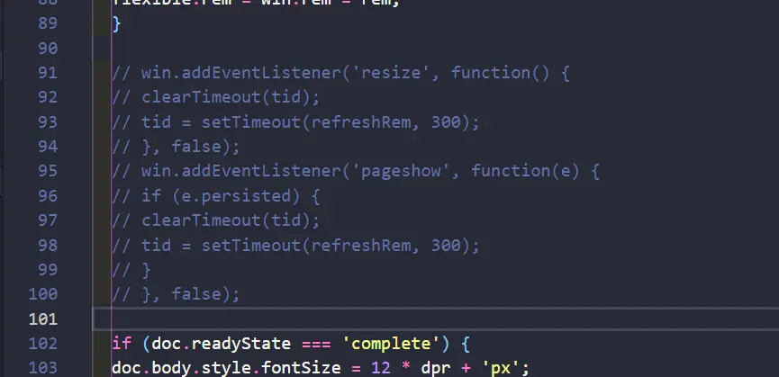 先获取到初始的缩放比例,然后根据安卓原生传入的缩放比例改写html标签上的fontsize大小,由于采用了rem适配,自会根据根元素大小进行适配。这种方案必须确保先让flexible的适配先执行,然后判断是否是安卓,如果是安卓就执行setScaleFont方法才有效,否则会被flexible里面的方法覆盖掉,造成页面先放大后缩小或者先缩小后放大的现象。