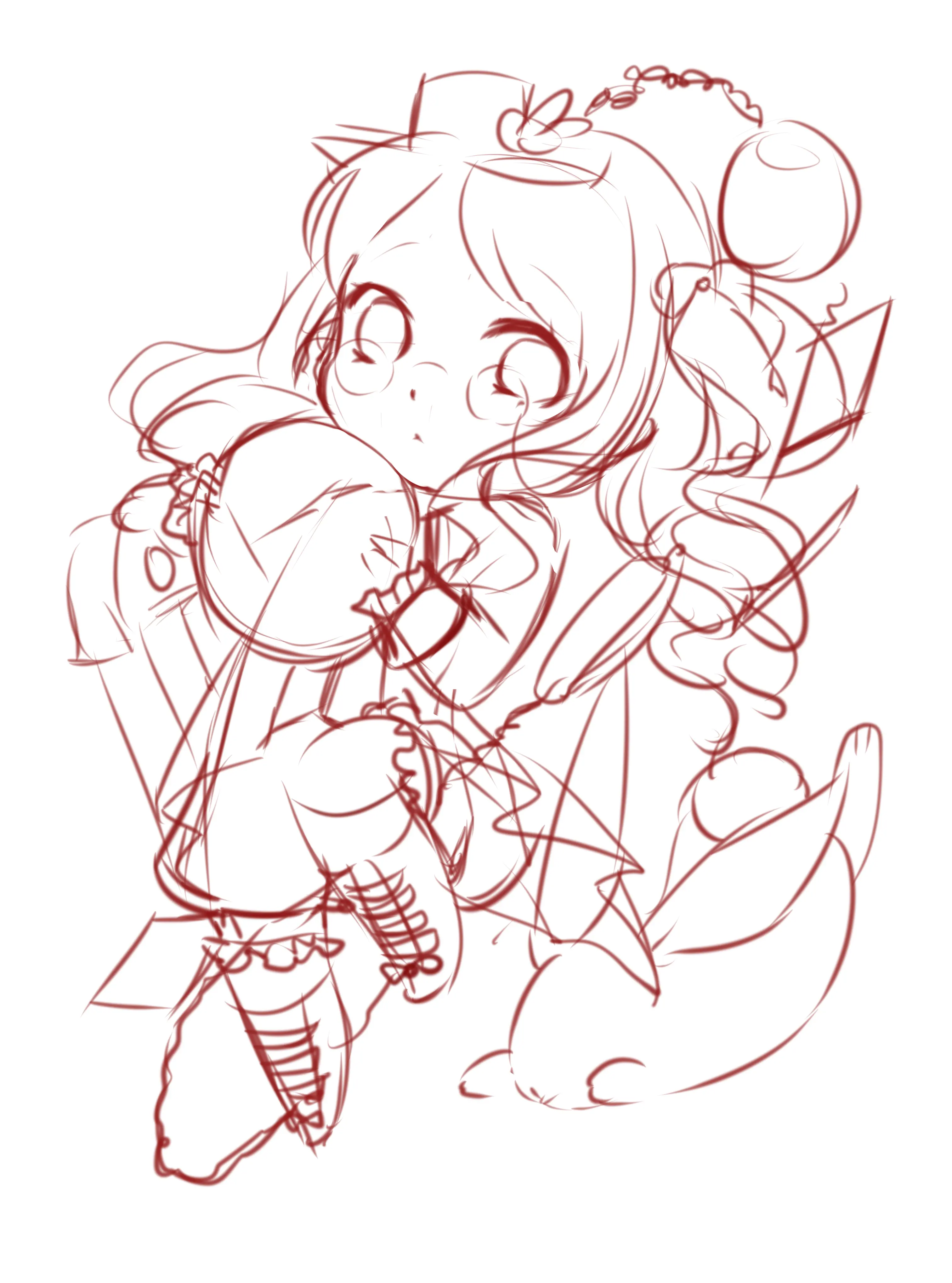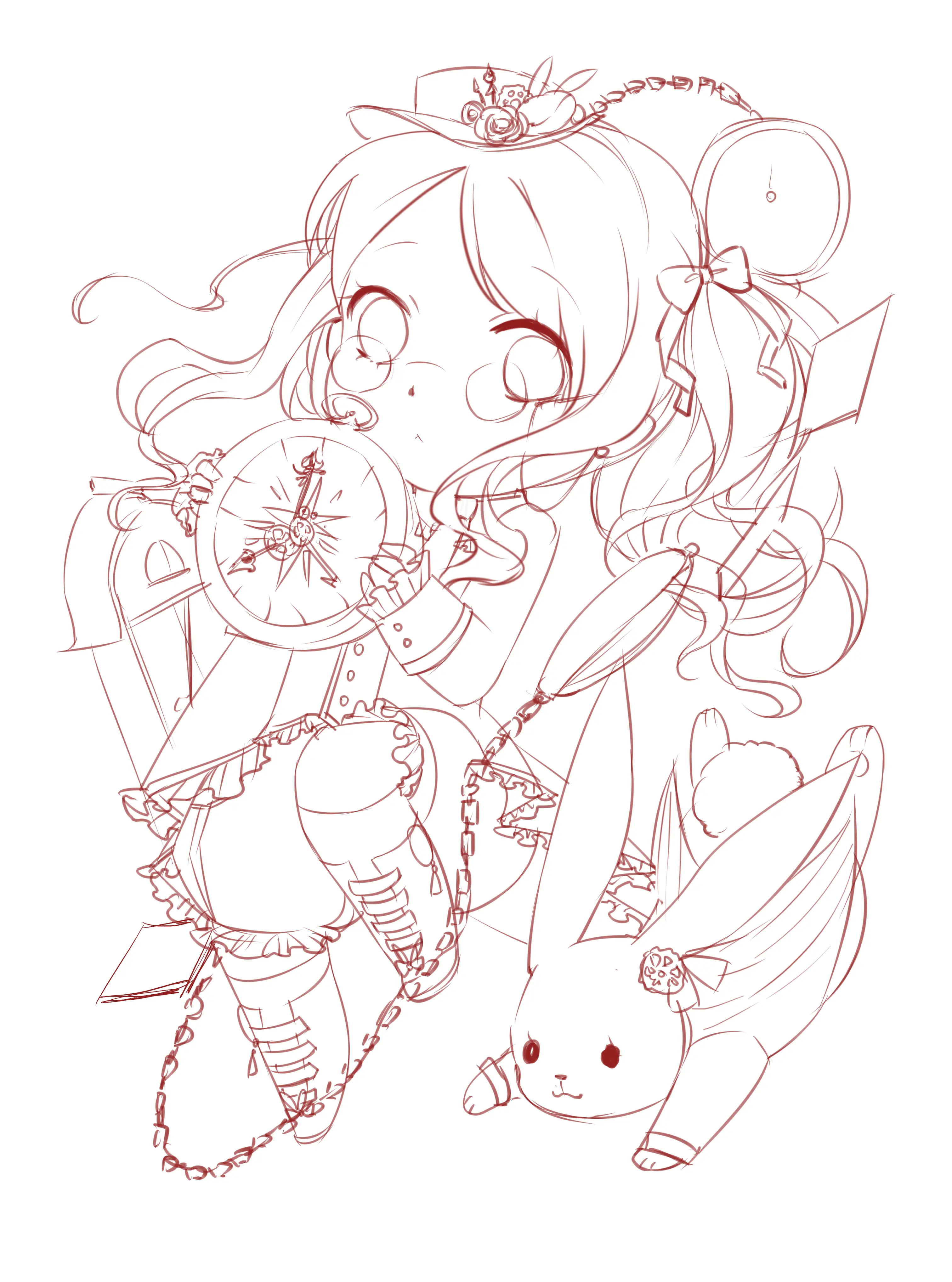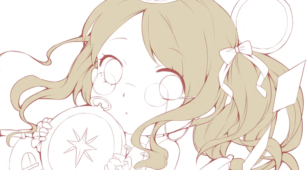 大致地画出人物的大体动作与形态(比如头发是飘着的,手上抱了一个钟表)为之后的细化提供大体的一个走向(ps:感觉太