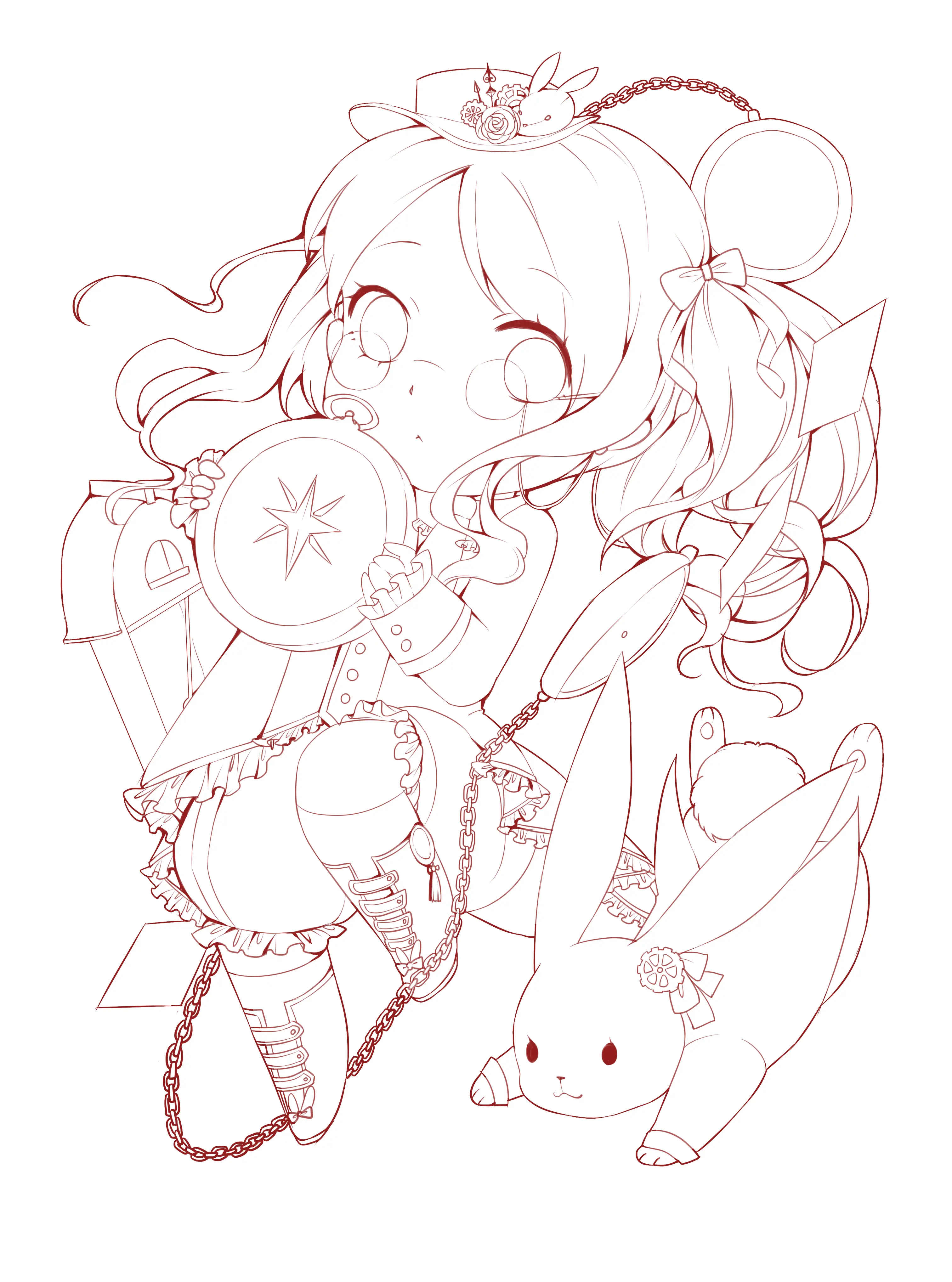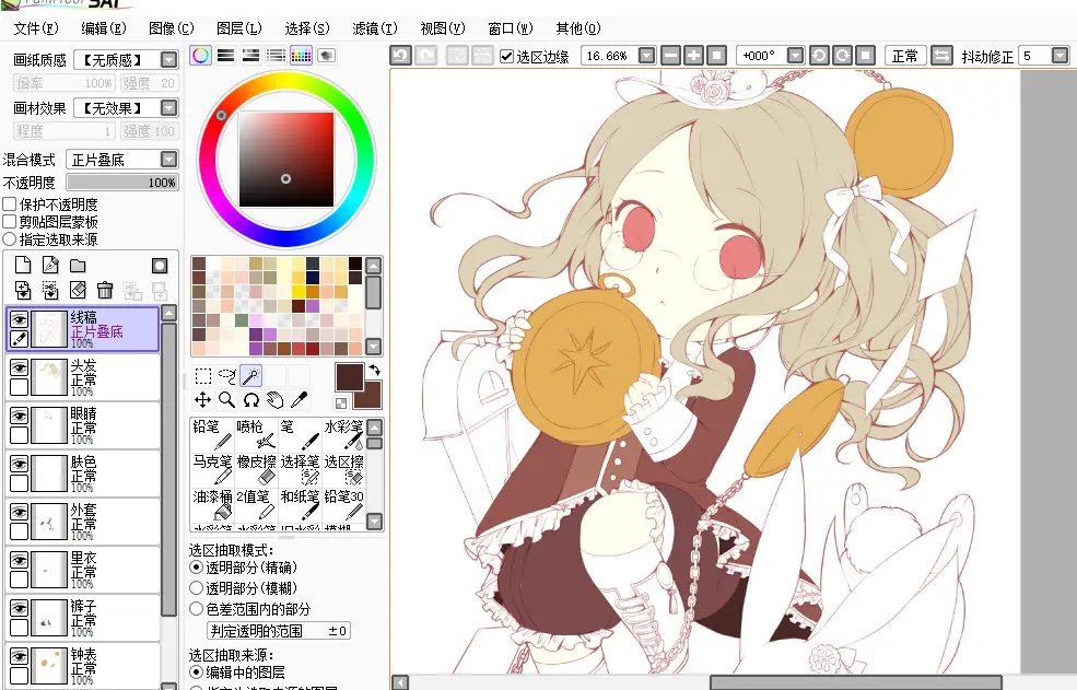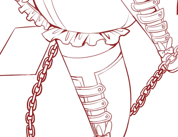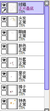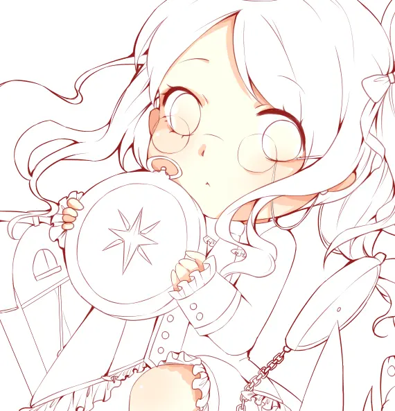 这一步是为了细致地刻画一些饰品(比起上面的起草,细化草稿基本就能看清一些饰品与衣服的扣子之类的,这一步也是为了