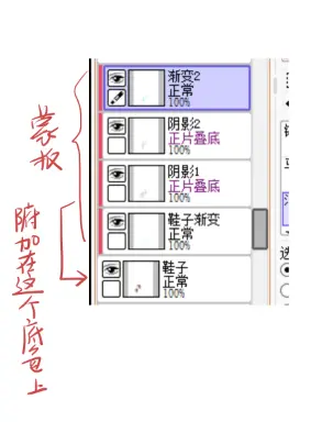 这一步顾名思义就是把刚刚我们画的所有大色块的图层挨个来细化,我们需要用到的工具就是蒙版工具: