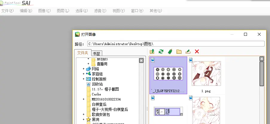 第六步:翻出我们之前找的素材,拖入sai里