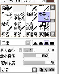 最后的最后,我会选择一种笔刷:水墨来刻画云朵,这个笔刷个人觉得画云挺好看的 ,画好云的效