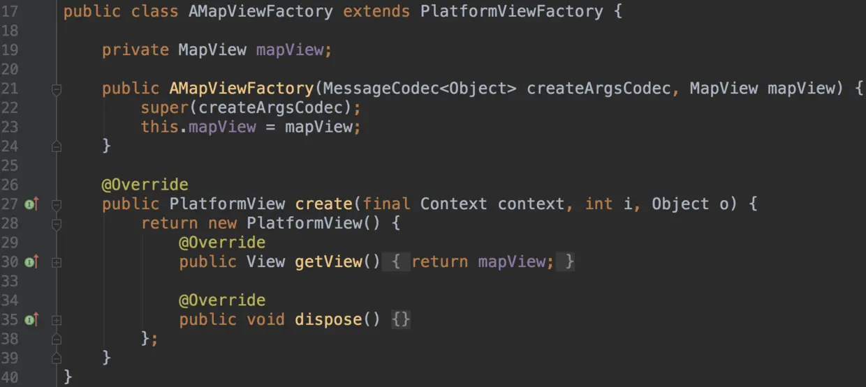 第二步:在native侧添加代码,写一个PlatformViewFactory,PlatformViewFactory的主要任务是,在create()方法中创建一个View并把它传给Flutter(这个说法并不准确,但是我们姑且可以这么理解,后续会进行解释)