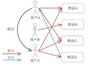 假设用户 A 喜欢物品 A 和物品 C,用户 B 喜欢物品 A,物品 B 和物品 C,用户 C 喜欢物品 A,从这些用户的历史喜好可以分析出物品 A 和物品 C 时比较类似的,喜欢物品 A 的人都喜欢物品 C,基于这个数据可以推断用户 C 很有可能也喜欢物品 C,所以系统会将物品 C 推荐给用户 C。