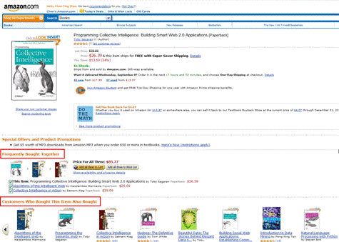 - 别人购买 / 浏览的商品 (Customers Who Bought/See This Item Also Bought/See): 这也是一个典型的基于项目的协同过滤推荐的应用,通过社会化机制用户能更快更方便的找到自己感兴趣的物品。