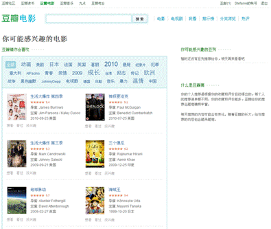 豆瓣是国内做的比较成功的社交网站,它以图书,电影,音乐和同城活动为中心,形成一个多元化的社交网络平台,自然推荐的功能是必不可少的,下面我们看看豆瓣是如何推荐的。
