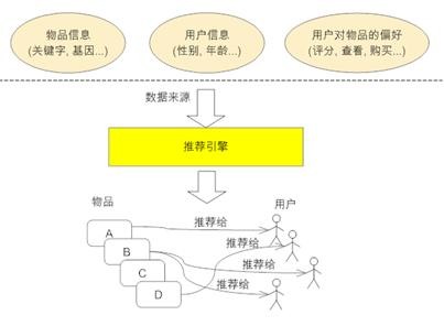 推荐系统根据不同的推荐机制可能用到数据源中的一部分,然后根据这些数据,分析出一定的规则或者直接对用户对其他物品的喜好进行预测计算。这样推荐系统可以在用户进入的时候给他推荐他可能感兴趣的物品。