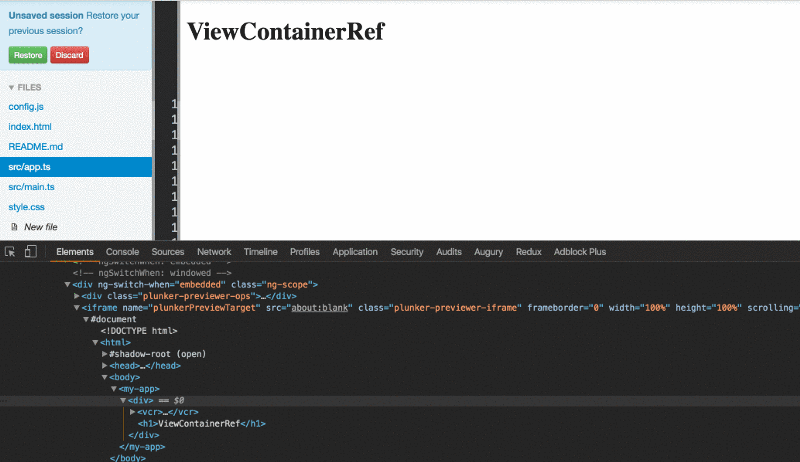 component-insert-into-dom-viewcontainer: 用来演示以DOM元素为视图容器ViewContainerRef,将一个组件插入视图容器的效果。