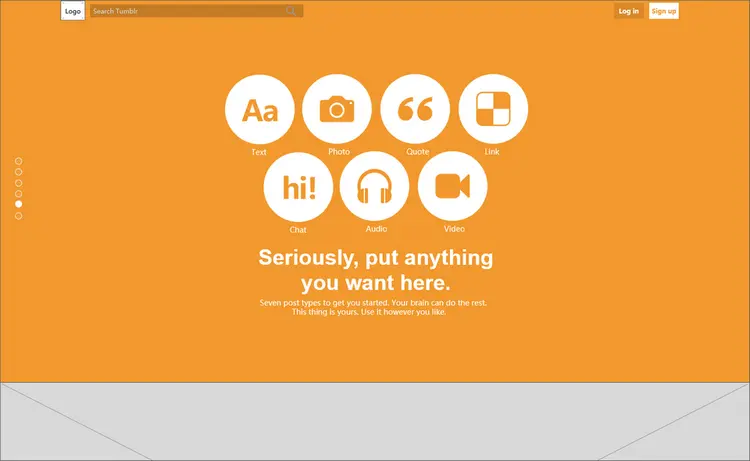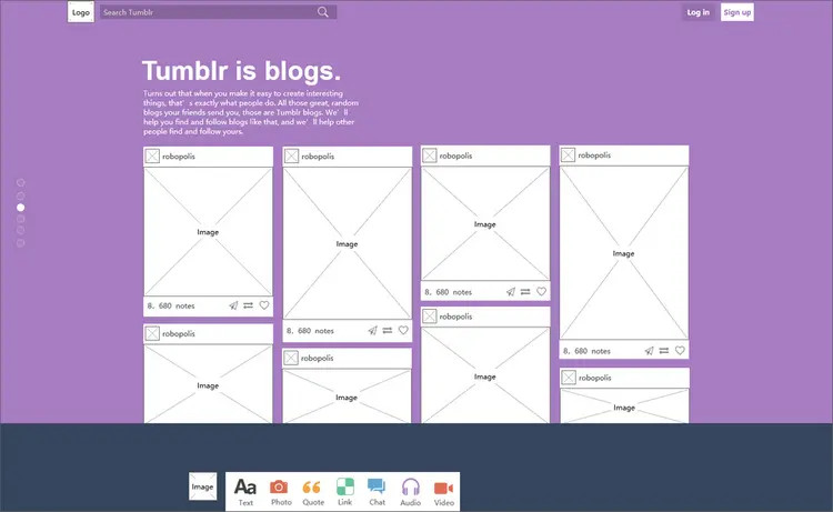 Tumblr是一种介于传统博客和微博之间的全新媒体形态,既注重表达,又注重社交,而且注重个性化设置,成为当前最受年轻人欢迎的社交网站之一。内容页采用瀑布流的网页排版方式,可展现丰富内容。
