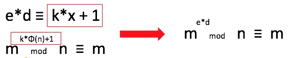 根据模反元素,因为e*d 一定是x的倍数加1。所以如下: