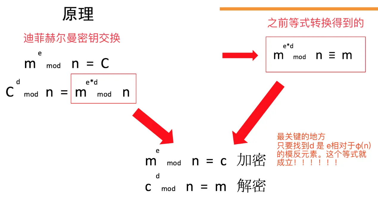 这个等式成立有一个前提!就是关于模反元素的,就是当整数e和φ(n)互质!一定有一个整数d是e相对于φ(n)的模反元素。