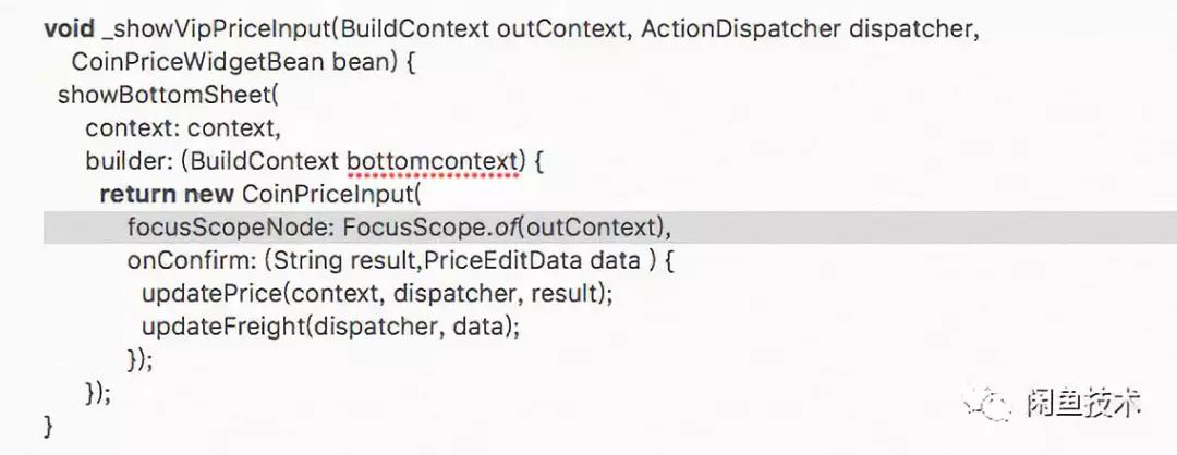 上面的错误在于在跨堆栈使用了buildcontext。由于outcontext的生命周期与buttomcontext不一致,在弹出bottomsheet的时候outcontext可以已经处于umount或者deactivite。上面例子正确的做法是使用bottomcontext获取focusScopeNode。