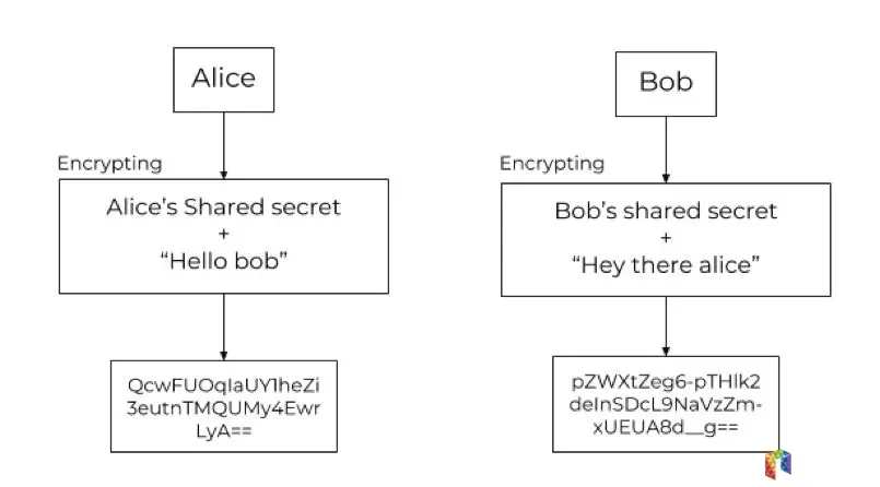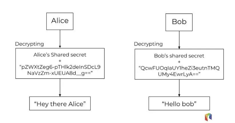所幸Alice与Bob先前互换过公钥,因此两人对共享密钥都有访问权限,因此他们可以使用共享密钥来解密对方发送的信息。