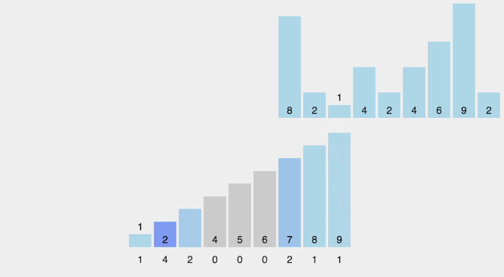 计数排序的核心在于将输入的数据值转化为键存储在额外开辟的数组空间中。作为一种线性时间复杂度的排序,计数排序要求输入的数据必须是有确定范围的整数。