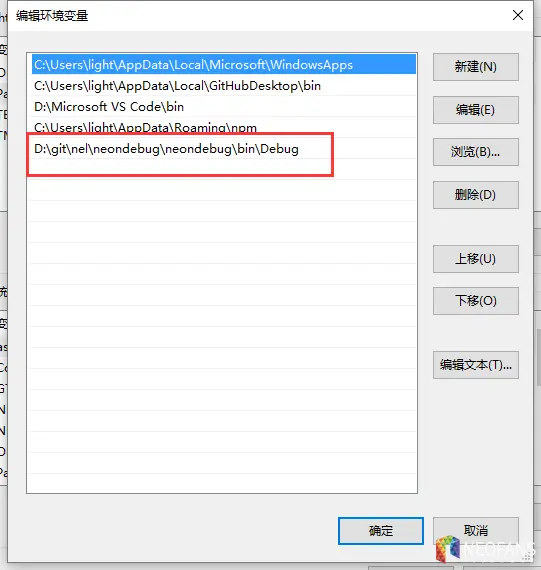 怎么替换呢,请参照如下步骤移除你原来neon.exe 的path,换上neondebug的
