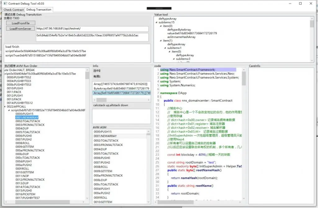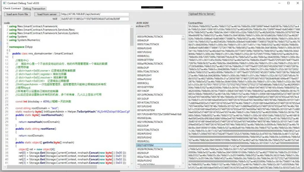 可以进行查看,查看以后,就可以用NEONDEBUGGUI的调试交易工具调试使用此脚本的交易。
