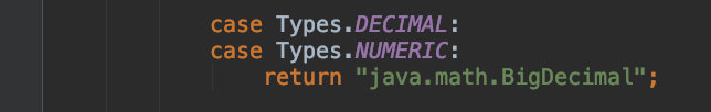 我们可以看到在Mysql中的Decimal和Numeric类型的都被转化为了BigDecimal,所以在Sql文件中进行类型转换就行