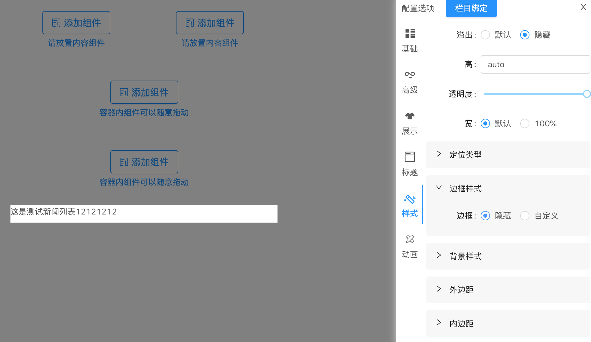 同时,需要定义一个画布级容器用于满足浮动定位需求,当展示型模块进行拖拽操作时,可放置在该容器中用于解决浮动定位排版需求.