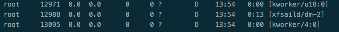 Xfs第二个问题是xfsaild进入D状态缓慢导致宿主机大量D状态进程和僵尸进程,最终导致宿主机僵死,典型的现象如下图。