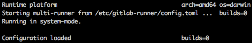 使用命令行运行 Runner,sudo gitlab-runner run ,启动成功后如下截图: