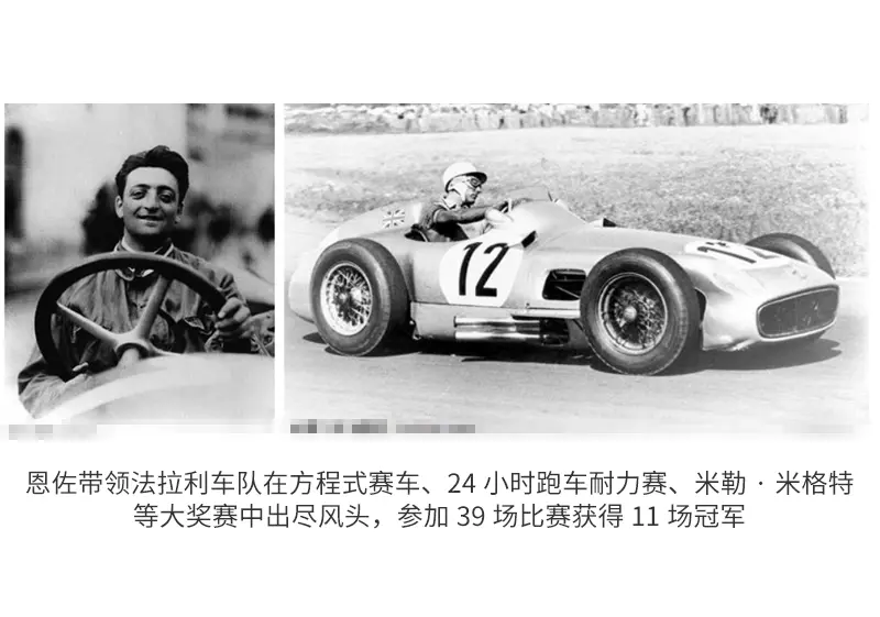 当然法拉利并非一诞生就属于菲亚特,1929时候法拉利的创始人恩佐法拉利还属于阿尔法罗密欧赛车手,但是他开始对商业及造车兴趣更浓厚,所以在阿尔法内部成立了斯库德里亚·法拉利车队(Scuderia Ferrari),用现在的话来说这属于一个事业部,恩佐负责该事业部的赛车研发与制造,一干就是7年,在1933年时候阿尔法罗密欧决定退出赛车界,将赛车业务分包给了恩佐,恩佐获得独立自主权后就像突然神功护体,带领法拉利车队在方程式赛车、24小时跑车耐力赛、米勒·米格特等大奖赛中出尽风头,参加39场比赛获得11场冠军。