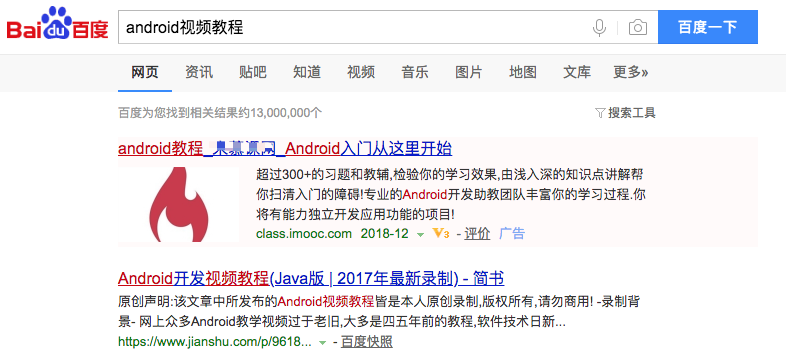 今天试了一下在百度搜索“Android视频教程”,结果着实让我惊讶,搜出来的不是什么老罗的视频,也不是各大网站的教程,而是我自己的。