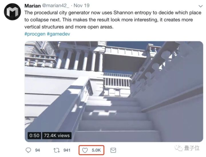 一位推特名Marian42_ (简称玛丽安) 的妹子,用WFC建造了无限之城。
