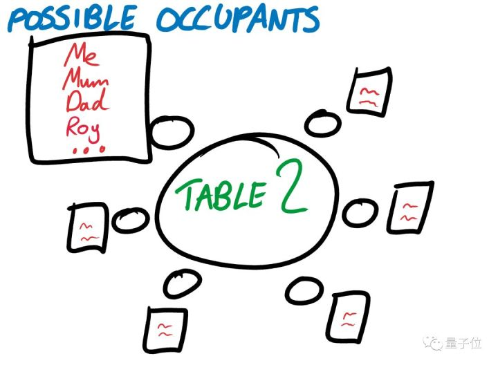 随后,确定下的每个人都影响后面人员的排布。如果Michele不想坐在2号桌,那他的妹妹Barack也肯定不在这一桌。通过不断更新可以坐在2号桌的人员名单,调整座位计划的波函数。