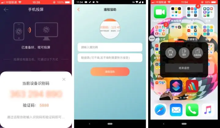 你也可以采用更为传统的「识别码 + 验证码」连接的方式,远程团队想要看到手机屏幕演示内容,可以通过向日葵客户端的「远程协助」功能看到手机屏幕实时画面了。这里值得一提的是,就算你是 Android 手机,也可以直接看到 iPhone 产品的演示。在远程的情况下,做到了产品交流上的「所见即所得」。