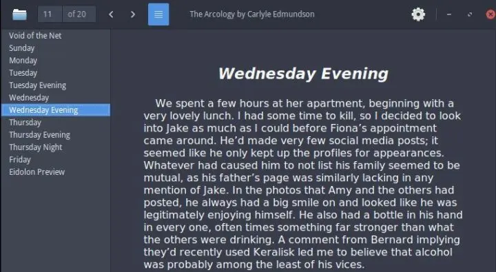 Easy Ebook Viewer 是又一个用于读取 ePub 文件的很棒的 GTK Python 应用。具有基本章节导航、从上次阅读位置继续、从其他电子书文件格式导入、章节跳转等功能,Easy Ebook Viewer 是一个简单而简约的 ePub 阅读器.