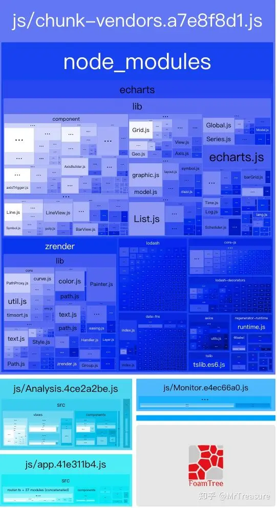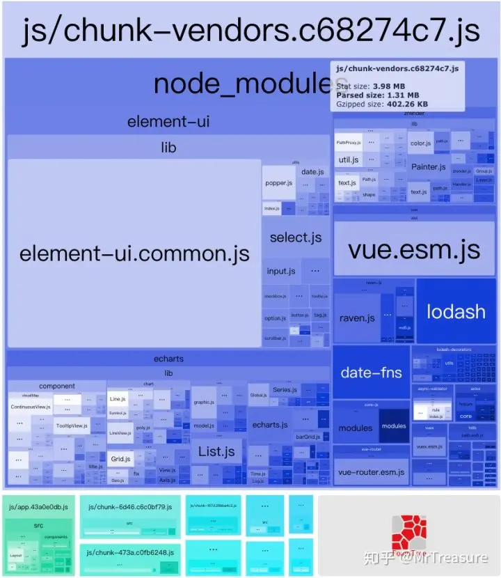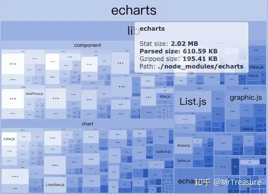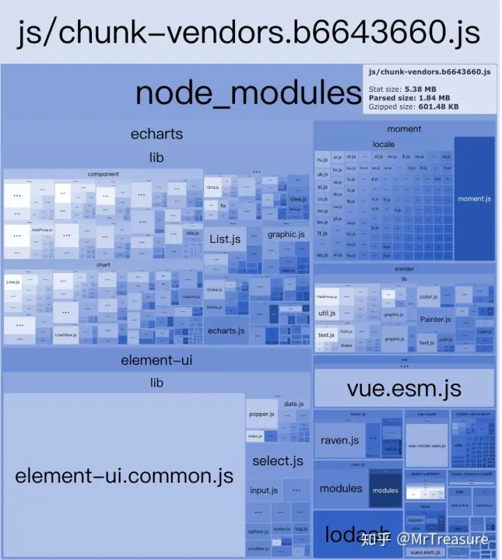 这里可以看到 ECharts 库占了很大一部分,然后是 moment ElementUI 这些库。