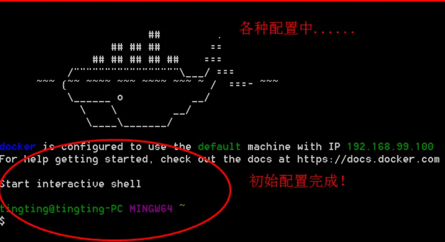 1.点击Docker Quickstart Terminal图标,从而打开一个Docker Toolbox terminal