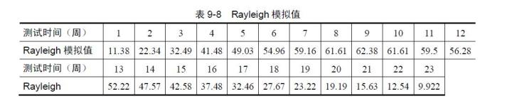 使用Rayleigh 模型生成的模拟值见表9-8。