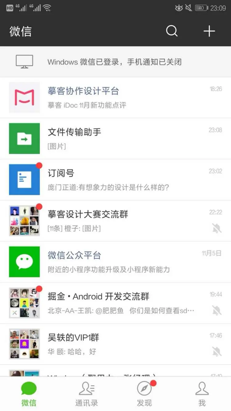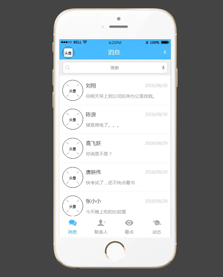 这种APP首页设计方式在社交类软件中比较常见。比如我们日常常用的微信APP、腾讯QQ等;