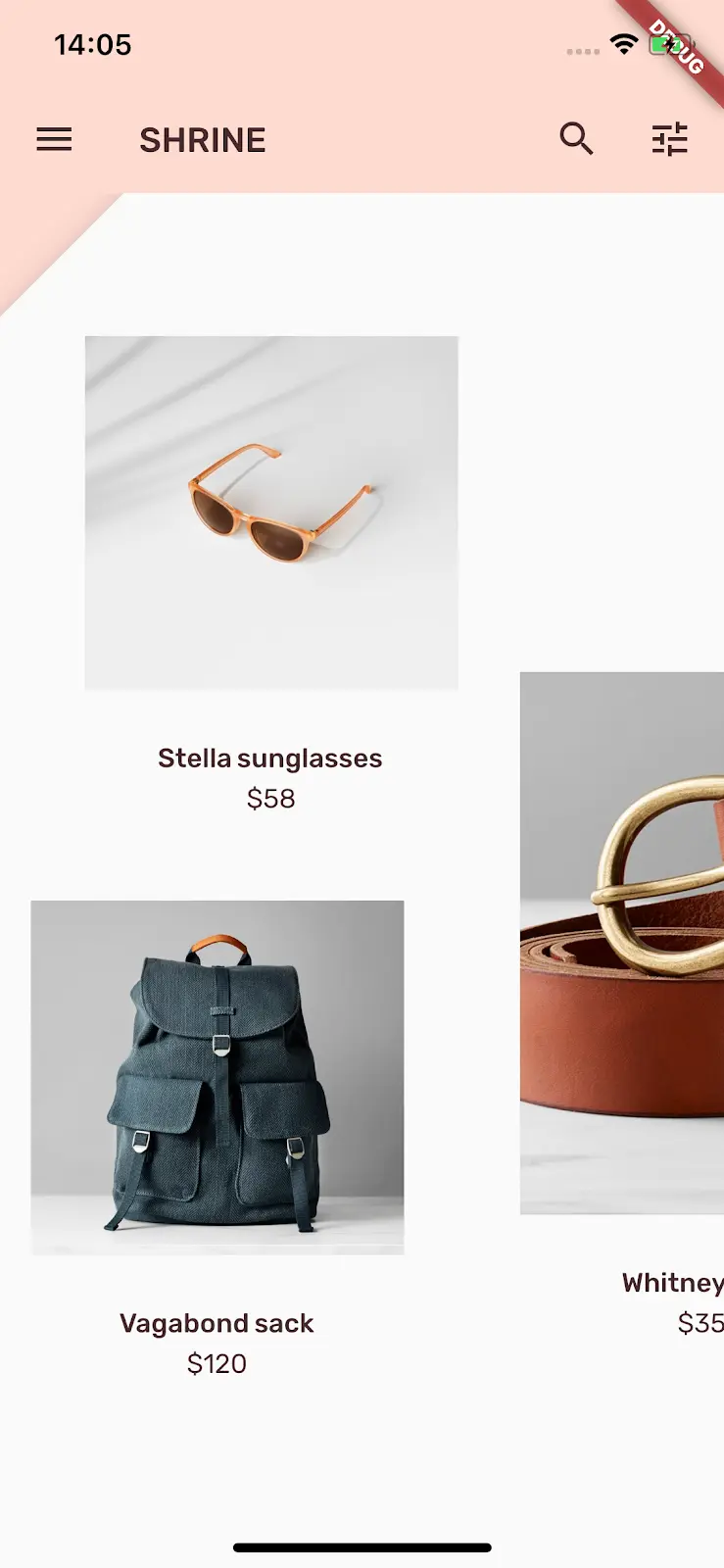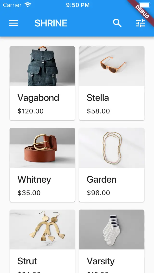 在本教程中,你将为 Shrine —— 一个销售服装和家居用品的电子商务应用程序构建一个主页面。它将含有: