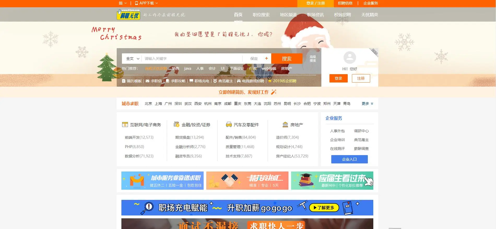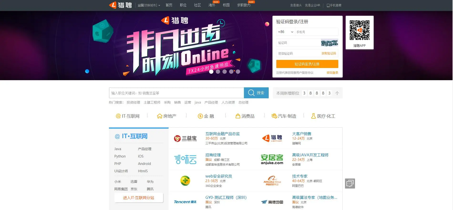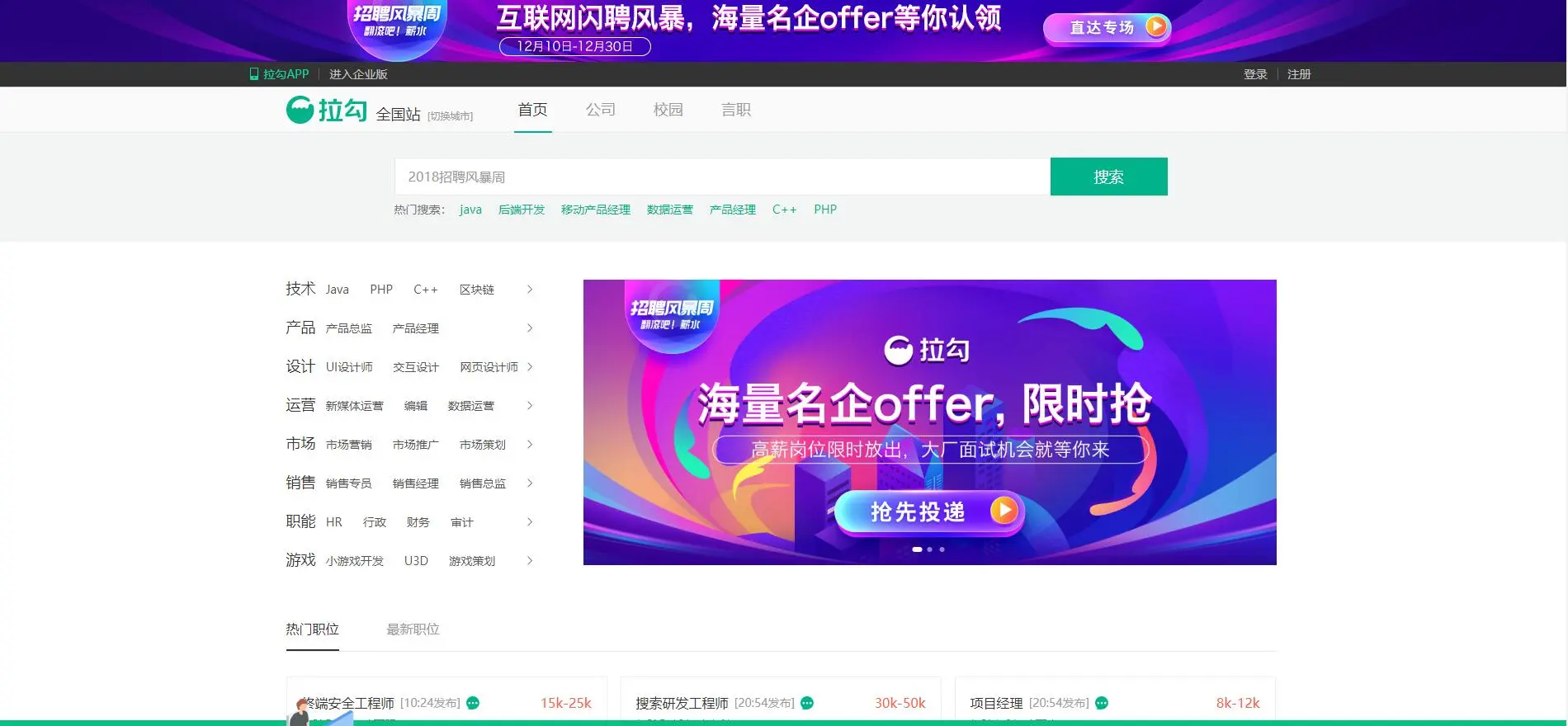 IT招聘网站(程序员跳槽指南) 老_大叔o 2018-12-27 830 阅读1分钟 自从写了上一篇文章程序员接私活平台,发现反响真的是很高啊(๑•̀ㅂ•́)و✧(心中暗喜),这次就写一个IT类招聘的网站吧 原文地址:nolon.xyz/archives/63… 老大叔博客:nolon.xyz 牛客网 地址:www.nowcoder.com 智联招聘 地址:www.zhaopin.com/ 前程无忧 地址:www.51job.com/ 拉勾网 地址:www.lagou.com/ 猎聘网 地址:www.liepin.com/ 中华英才网 地址:www.chinahr.com 大街网 地址:www.dajie.com/ CSDN招聘 地址:job.csdn.net/ 内推网 地址:www.neitui.me/ 100offer 地址:cn.100offer.com/ Boss直聘 地址:www.zhipin.com/