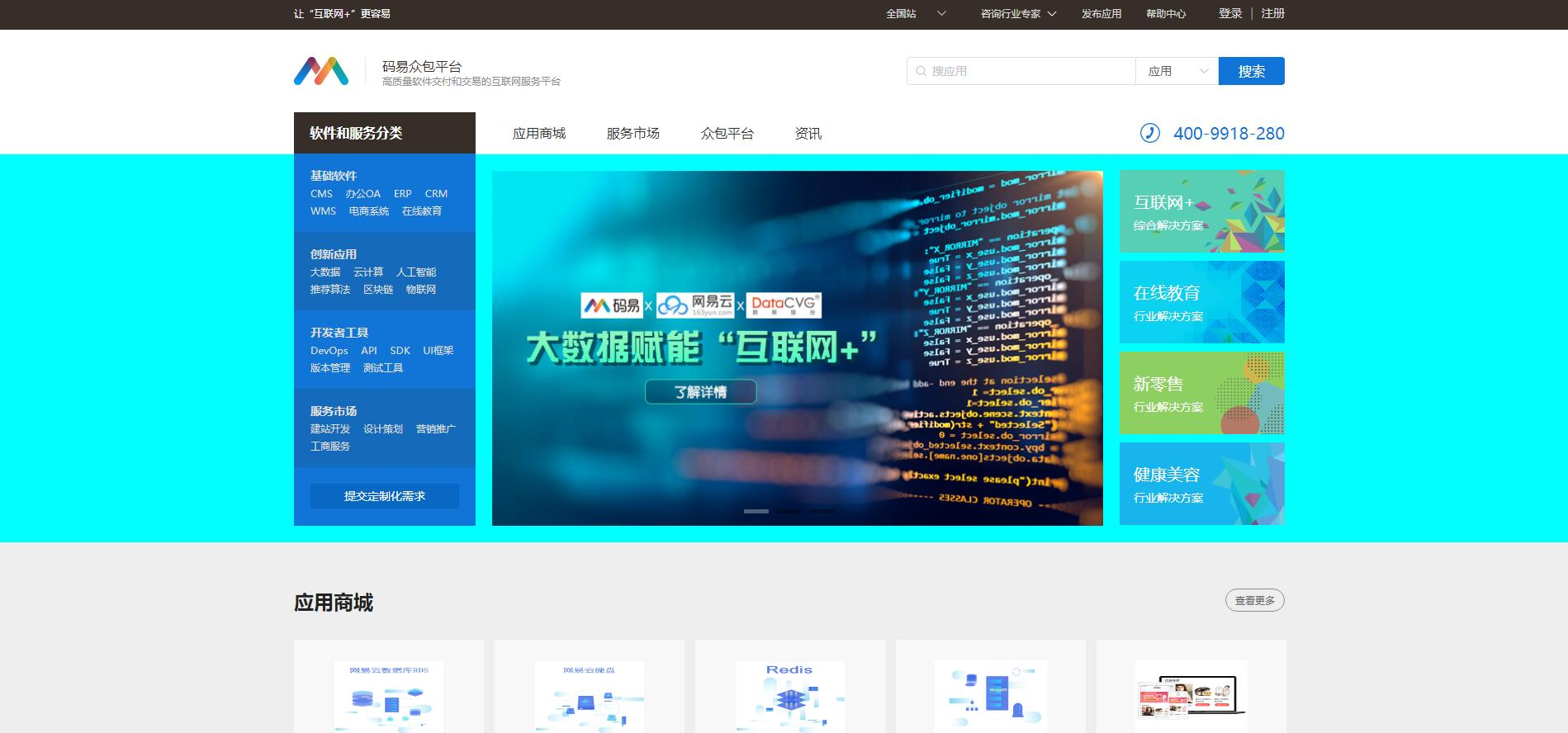 集可视化开发,应用市场,威客众包,PasS云于一体的企业级应用服务平台