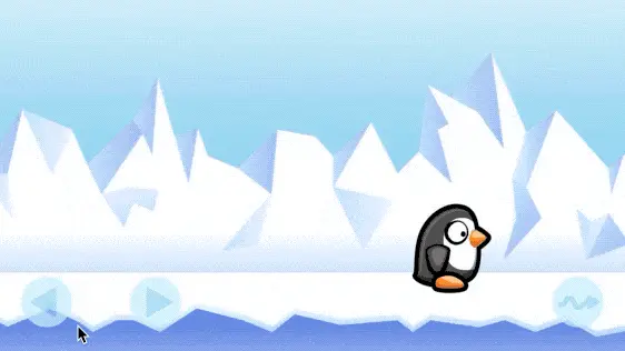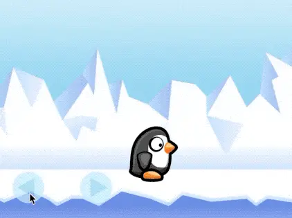运行,可以看到企鹅跳到自己肚子上滑动。