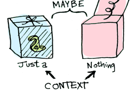 很简单。让我们扩展一下,任何值都可以被放入一个上下文中。所以现在你可以将上下文想象成一个盒子,你可以将一个值放进这个盒子中。