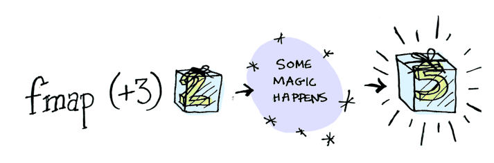 当我们写下fmap (+3) (Just 2)时,它正发生着下面的事情: