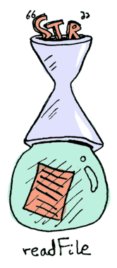 readFile需要一个字符串(文件名)参数,返回这个文件的内容: